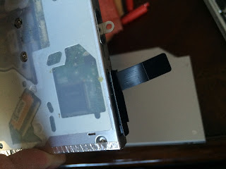 Now everything goes back together. This really is simple, the adaptor with the new drive in it easily slips back into where the CD-ROM drive came out.