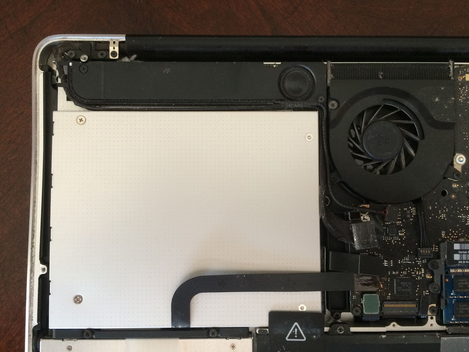 First I remove the screws for the speaker unit that is over the drive, and just move it out of the way.